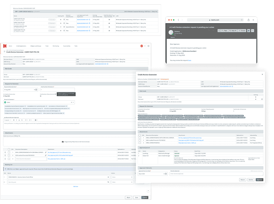 End-to-End Digital Workflow: From preparing the Credit Application to routing for approvals and implementation, the entire process is now digital — replacing fragmented tools and email-based approvals.