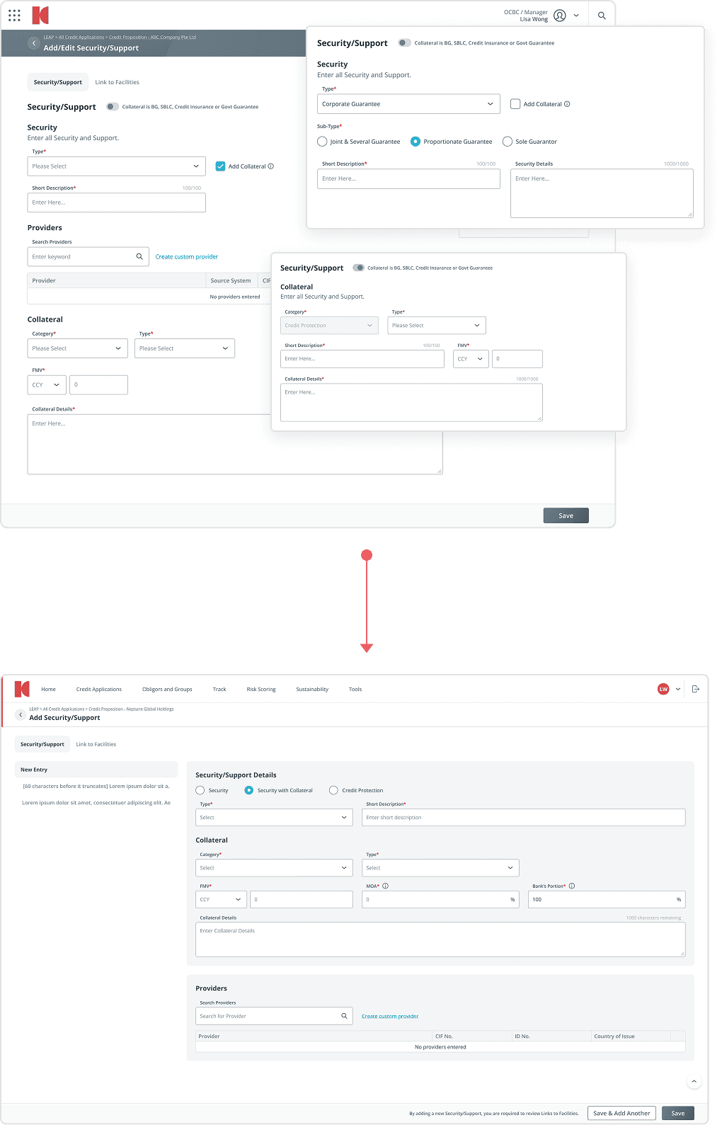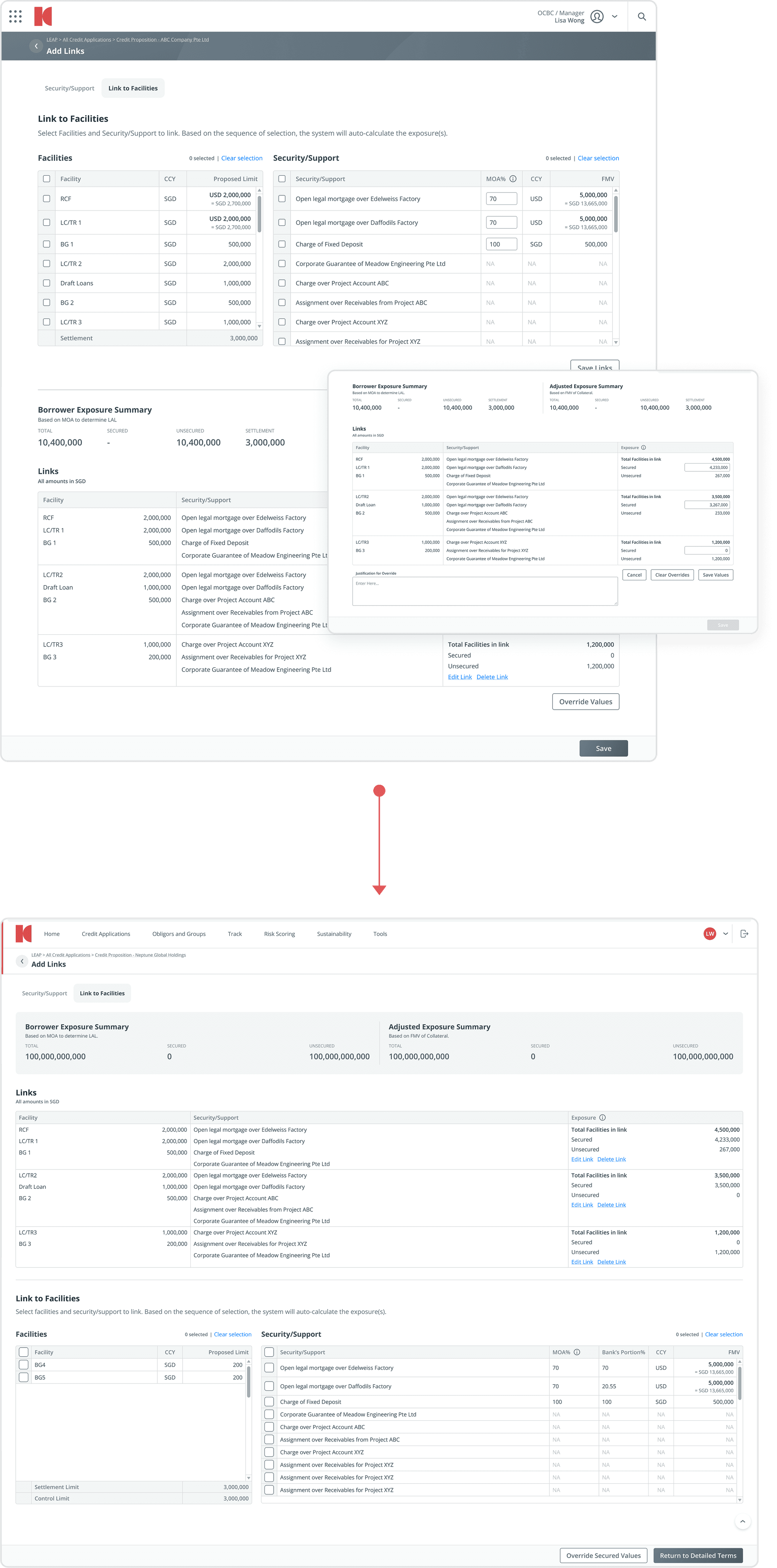 Linking of security/support to facilities is critical in credit application as it determines borrower’s risk and exposure. Users have feedback that the current experience feels disjointed.