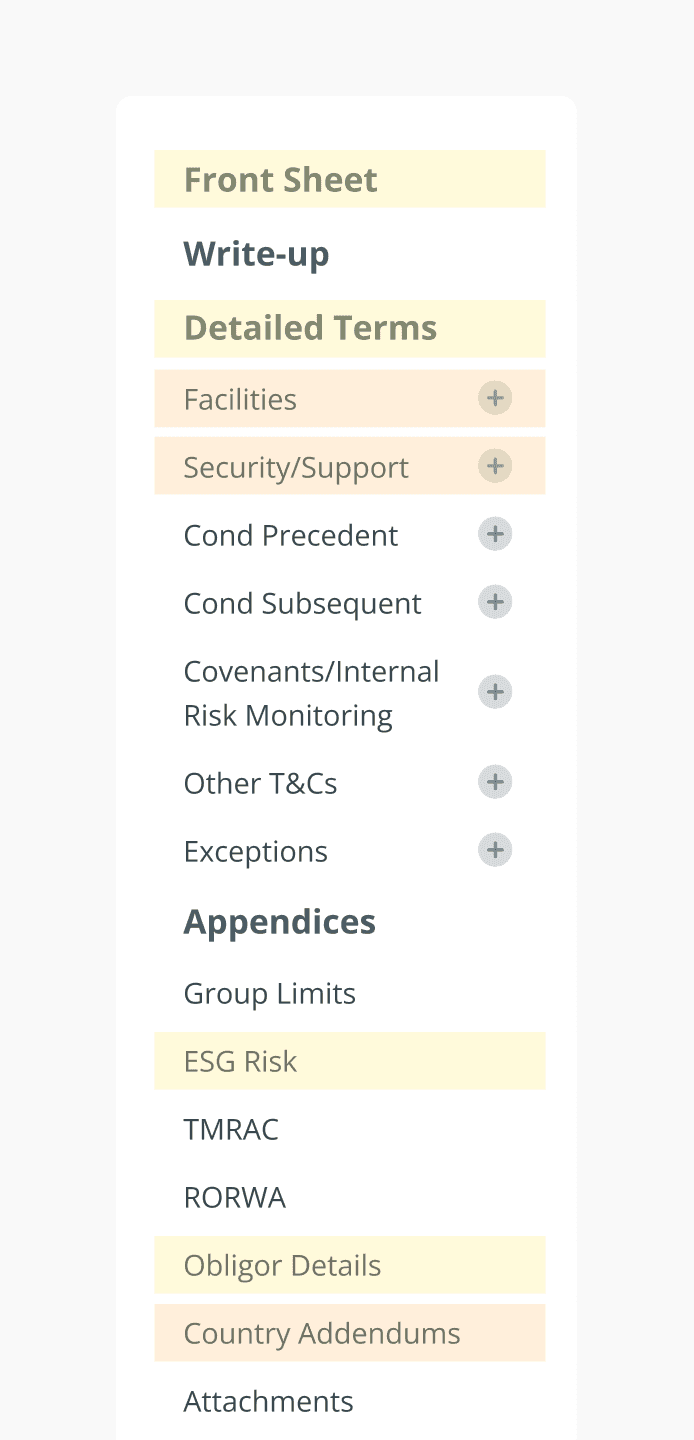 Clearer Credit Application IA structure helping RMs to focus on regional compliance only when necessary.