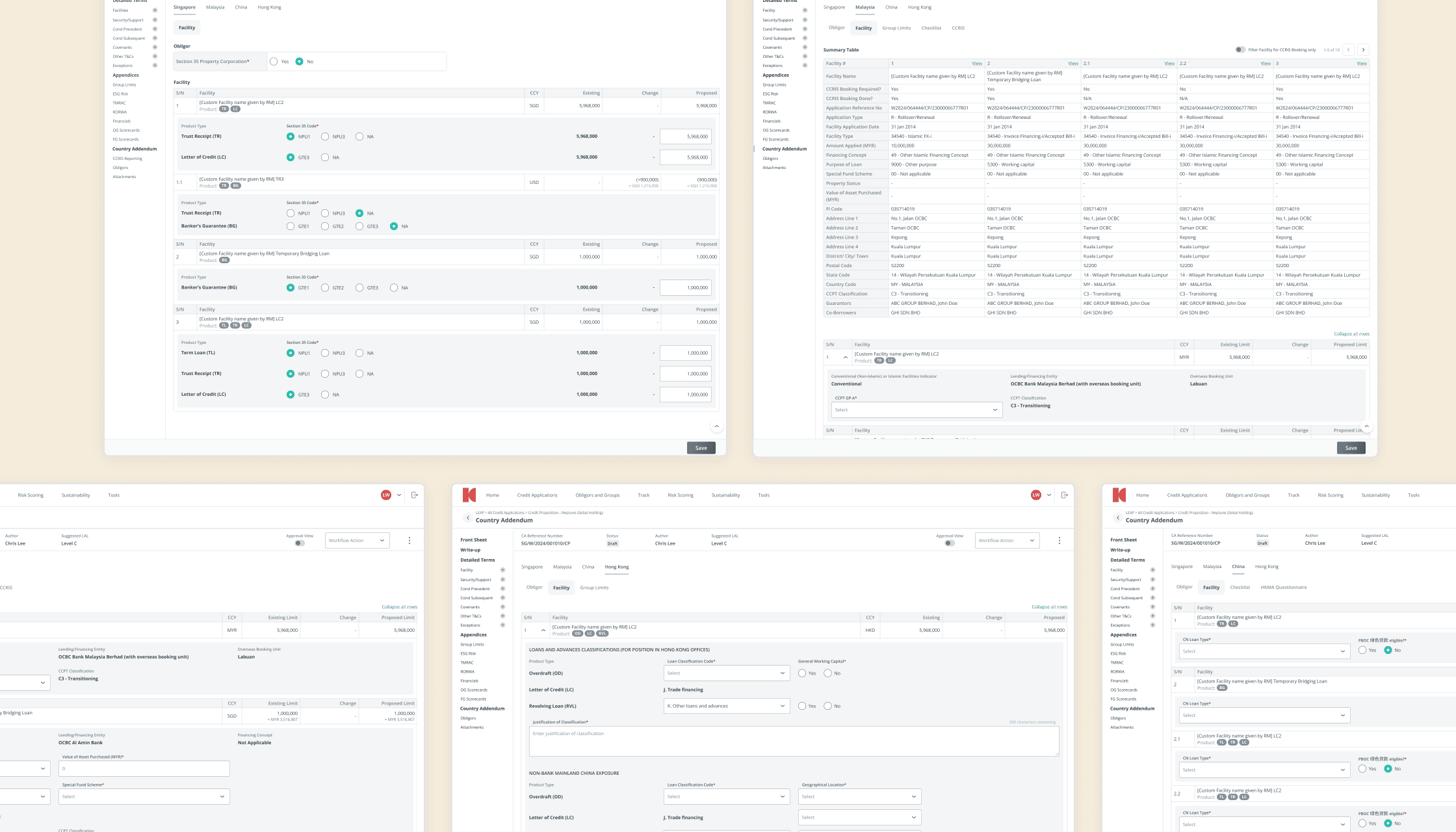 I led the end-to-end design of the Country Addendum module to support the Bank’s strategic direction to unify credit processes across countries. While Singapore and Malaysia were already on the legacy platform, workflows in Hong Kong and China remained manual, unstructured, and prone to risk. Each of these countries has specific compliance procedures and unique data requirements that extend beyond the Bank’s standard data fields, which were previously scattered, handled manually or managed out-of-system.